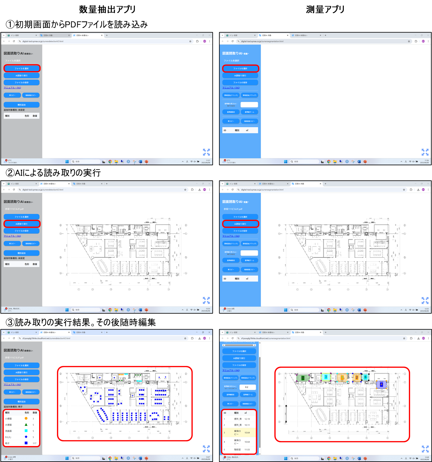 私たちが開発したのは、PDFの建築図面をブラウザにアップロードするだけで、そこに描かれた設備(トイレなど)の数や、部屋の面積をAIが自動で読み取ってくれるWebアプリケーションです。